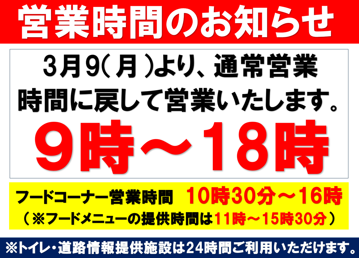 ※3/8(日)まで冬期間短縮営業(9:30~17:00)となっておりました。期間中にご利用のお客様にはご不便をおかけいたしました。